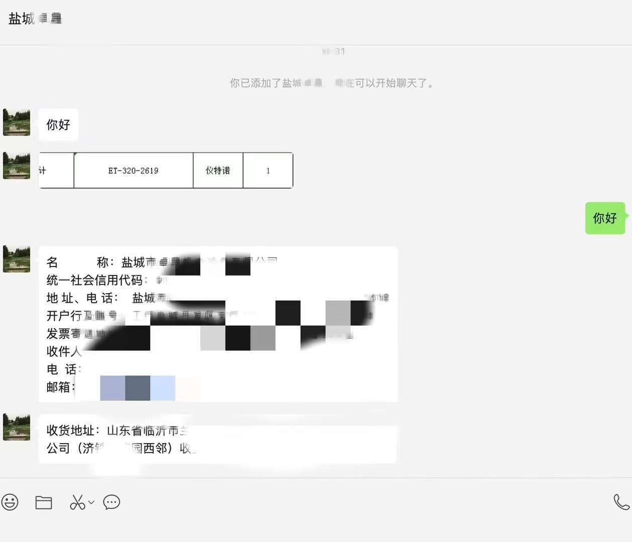 這個(gè)加上微信就發(fā)開票信息和收貨地址的客戶,其實(shí)這臺(tái)ET-320密度計(jì)用戶首次來咨詢的時(shí)間是在2月初~